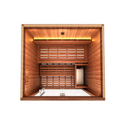 The Golden Designs 2025 "Sundsvall Edition" is a premium traditional sauna designed for two users, offering a compact yet luxurious home spa experience. Built with high-quality Canadian Red Cedar for the interior and Pacific Premium Clear Cedar with a clear exterior stain, this sauna combines durability, elegance, and natural insulation. Its clear tempered glass door adds a modern touch while maintaining a bright and open feel.